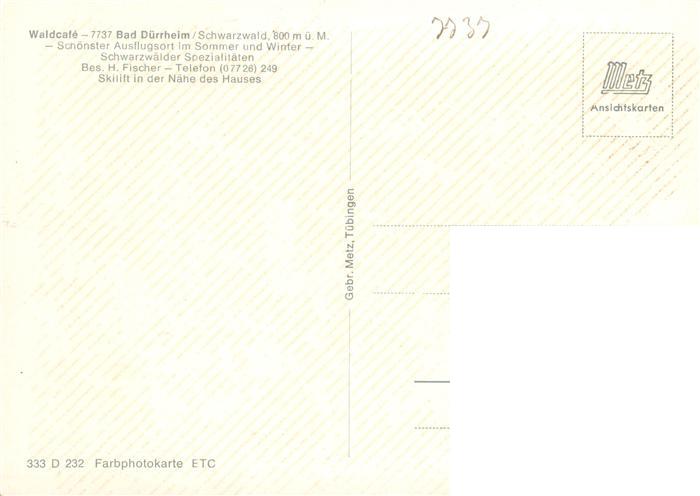 73926843 Bad Duerrheim Waldcafe postalisch nicht gelaufen Erhaltung siehe scans [FriedD77] KatCode: 11110008326003