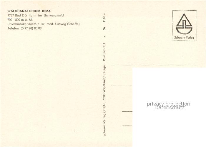 73615252 Bad Duerrheim Waldsanatorium Irma Gastraeume postalisch nicht gelaufen Erhaltung siehe scans [WerneD78] KatCode: 11110008326003