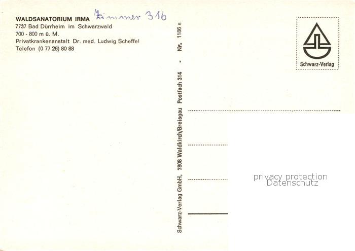 72969814 Bad Duerrheim Waldsanatorium Irma Restaurant postalisch nicht gelaufen Erhaltung siehe scans [LiesaD40] KatCode: 11110008326003