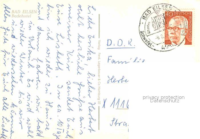 72853066 alte Postkarte Bad Eilsen Badehotel postalisch gelaufen Erhaltung siehe scans [NatalD47] KatCode: 11110003257005