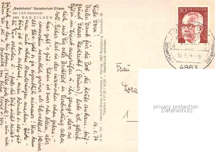 72824475 alte Postkarte Bad Eilsen Badehotel Sanatorium Eilsen der LVA Hannover Park postalisch gelaufen Erhaltung siehe scans [FriedD77] KatCode: 11110003257005