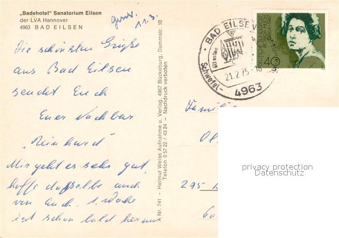 73718150 alte Postkarte Bad Eilsen Badehotel Sanatorium Eilsen der LVA Hannover postalisch gelaufen Erhaltung siehe scans [WerneD78] KatCode: 11110003257005