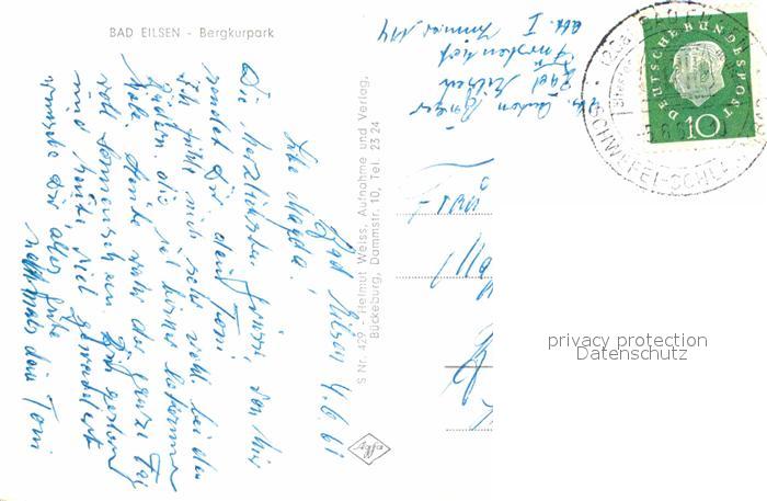 72643048 alte Postkarte Bad Eilsen Bergkurpark Poesie postalisch gelaufen Erhaltung siehe scans [FriedD77] KatCode: 11110003257005