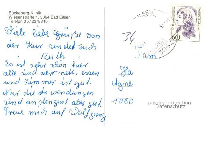 73107359 alte Postkarte Bad Eilsen Bueckeberg-Klinik postalisch gelaufen Erhaltung siehe scans [NatalD47] KatCode: 11110003257005