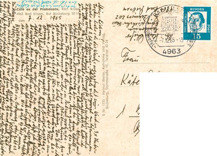 73911030 alte Postkarte Bad Eilsen Cafe an der Promenade Gaststube postalisch gelaufen Erhaltung siehe scans [WerneD78] KatCode: 11110003257005