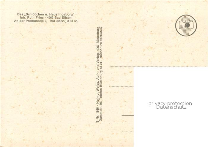 73650682 Bad Eilsen Das Schloesschen und Haus Ingeborg Garten Rosenbeet postalisch nicht gelaufen Erhaltung siehe scans [FriedD77] KatCode: 11110003257005
