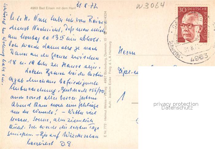 72931051 alte Postkarte Bad Eilsen Fliegeraufnahme mit Ida Turm postalisch gelaufen Erhaltung siehe scans [WerneD78] KatCode: 11110003257005