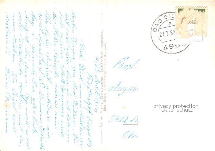 73127594 alte Postkarte Bad Eilsen Fuerstenhof Badehotel Steingarten Kirche Kurpark Freilichtbuehne postalisch gelaufen Erhaltung siehe scans [KathaD81] KatCode: 11110003257005
