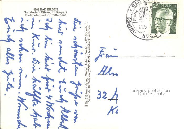 72439873 alte Postkarte Bad Eilsen Geork Wilhelm Haus Im Kurpark Evangelische Kirche Ida Turm postalisch gelaufen Erhaltung siehe scans KatCode: 11110003257005
