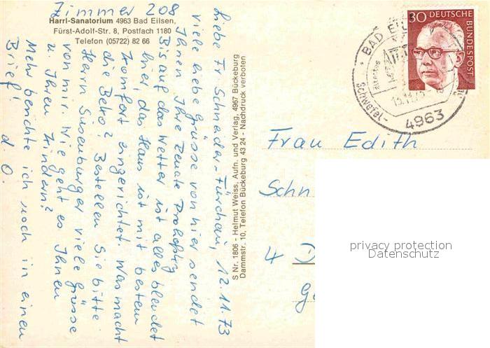 72904569 alte Postkarte Bad Eilsen Harrl Sanatorium Restaurant postalisch gelaufen Erhaltung siehe scans [FriedD77] KatCode: 11110003257005
