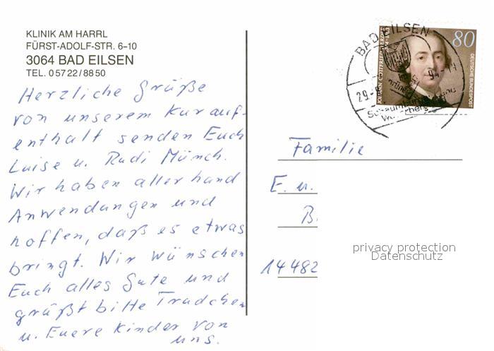 72687347 alte Postkarte Bad Eilsen Klinik am Harrl postalisch gelaufen Erhaltung siehe scans [FriedD77] KatCode: 11110003257005