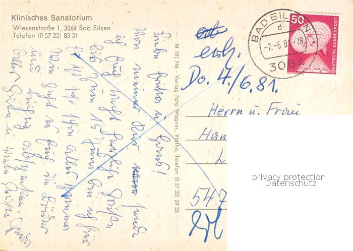 73636996 alte Postkarte Bad Eilsen Klinisches Sanatorium postalisch gelaufen Erhaltung siehe scans [FriedD77] KatCode: 11110003257005