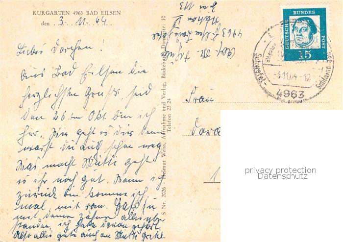 72670146 alte Postkarte Bad Eilsen Kurgarten postalisch gelaufen Erhaltung siehe scans [LiesaD40] KatCode: 11110003257005