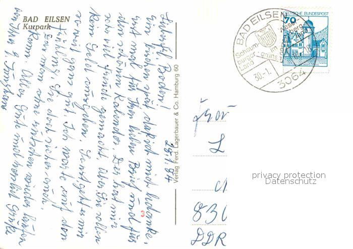 72630161 alte Postkarte Bad Eilsen Kurpark postalisch gelaufen Erhaltung siehe scans [LiesaD40] KatCode: 11110003257005