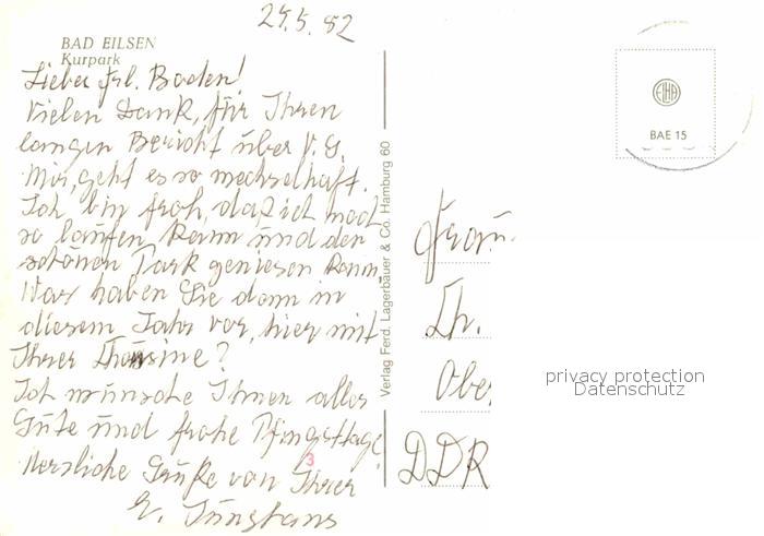 72631294 alte Postkarte Bad Eilsen Kurpark postalisch gelaufen Erhaltung siehe scans [LiesaD40] KatCode: 11110003257005