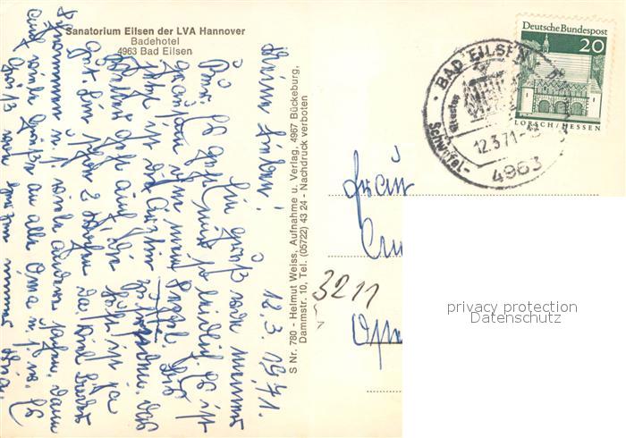 73677417 alte Postkarte Bad Eilsen Sanatorium Eilsen der LVA Hannover Badehotel postalisch gelaufen Erhaltung siehe scans [WerneD78] KatCode: 11110003257005