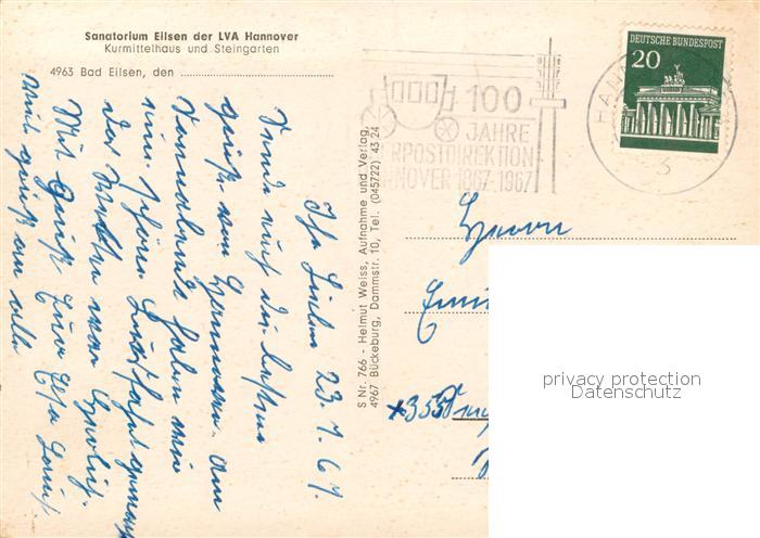 73721251 alte Postkarte Bad Eilsen Sanatorium Eilsen der LVA Hannover Kurmittelhaus und Steingarten postalisch gelaufen Erhaltung siehe scans [WerneD78] KatCode: 11110003257005