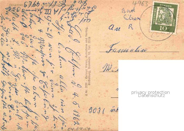 72912257 alte Postkarte Bad Eilsen Sanatorium Eilsen Kurgarten mit Fuerstenhof postalisch gelaufen Erhaltung siehe scans [FriedD77] KatCode: 11110003257005