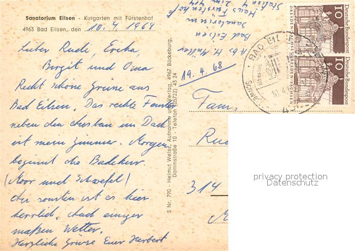 73128486 alte Postkarte Bad Eilsen Sanatorium Eilsen postalisch gelaufen Erhaltung siehe scans [NatalD47] KatCode: 11110003257005