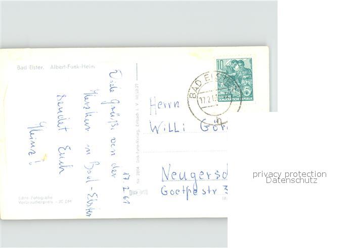 71963424 alte Postkarte Bad Elster Albert Funk Heim postalisch gelaufen Erhaltung siehe scans KatCode: 11110014178050