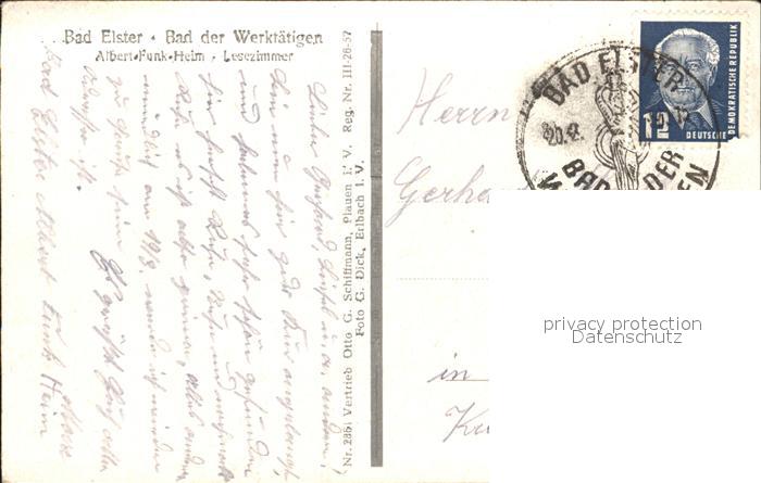 72361856 alte Postkarte Bad Elster Albert-Funk-Heim Lesezimmer postalisch gelaufen Erhaltung siehe scans KatCode: 11110014178050