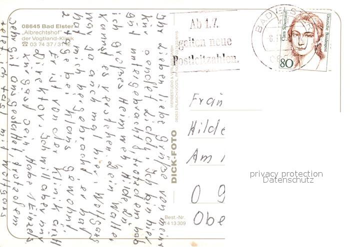 73110963 alte Postkarte Bad Elster Albrechtshof postalisch gelaufen Erhaltung siehe scans [NatalD47] KatCode: 11110014178050