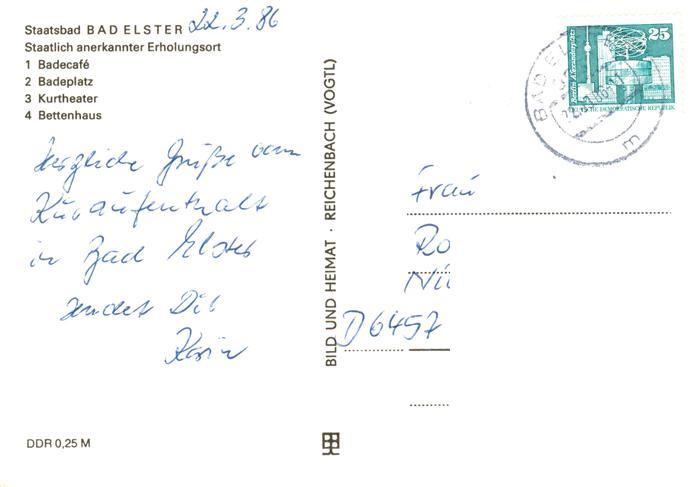 73888192 alte Postkarte Bad Elster BadeCafe Badeplatz Kurtheater Bettenhaus postalisch gelaufen Erhaltung siehe scans [FriedD77] KatCode: 11110014178050