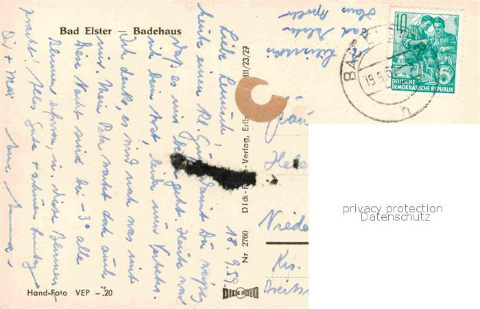 72699730 alte Postkarte Bad Elster Badehaus postalisch gelaufen Erhaltung siehe scans [LiesaD40] KatCode: 11110014178050