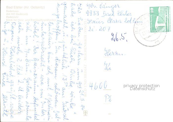 72261742 alte Postkarte Bad Elster Badehaus HO Badecafe Badeplatz Klinik postalisch gelaufen Erhaltung siehe scans KatCode: 11110014178050