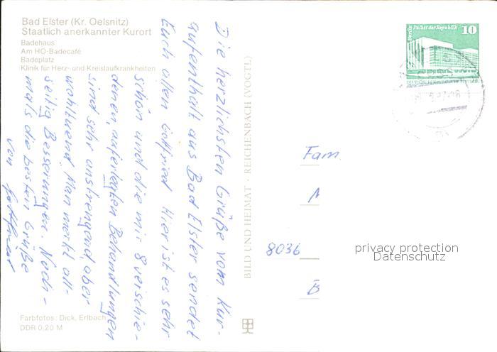 72586788 alte Postkarte Bad Elster Badehaus HO Badecafe Badeplatz Klinik fuer Herz und Kreislaufkrankheiten postalisch gelaufen Erhaltung siehe scans [WerneD78] KatCode: 11110014178050