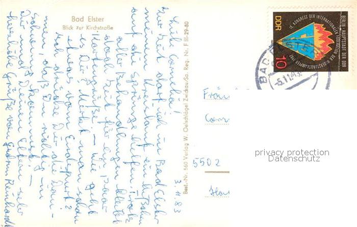73072360 alte Postkarte Bad Elster Blick zur Kirchstrasse postalisch gelaufen Erhaltung siehe scans [WerneD78] KatCode: 11110014178050