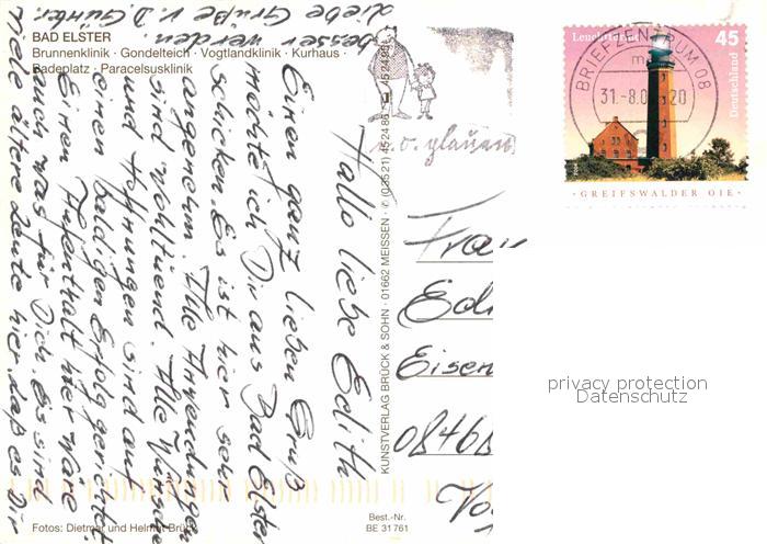 72739835 alte Postkarte Bad Elster Brunnenklinik Vogtlandklinik Kurhaus Paracelsusklinik postalisch gelaufen Erhaltung siehe scans [LiesaD40] KatCode: 11110014178050