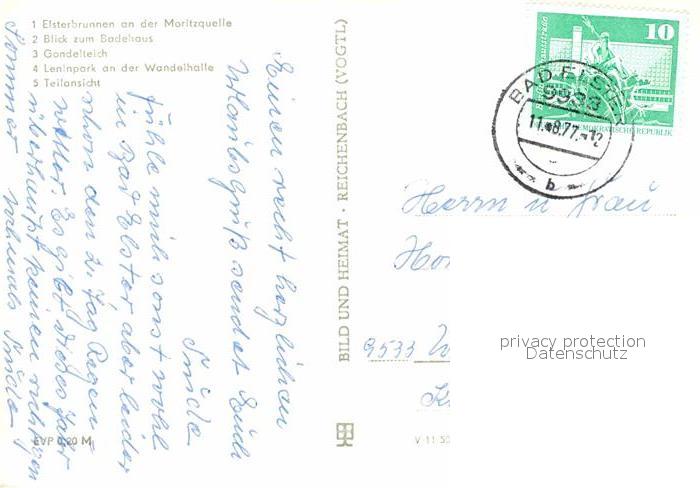 72703371 alte Postkarte Bad Elster Elsterbrunnen Moritzquelle Badehaus Gondelteich Leninpark Wandelhalle postalisch gelaufen Erhaltung siehe scans [FriedD77] KatCode: 11110014178050