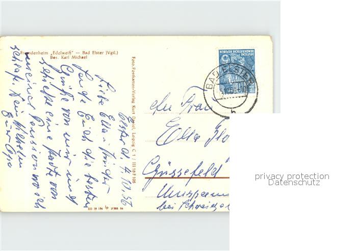 32359006 alte Postkarte Bad Elster Fremdenheim Edelweiss postalisch gelaufen Erhaltung siehe scans KatCode: 11110014178050
