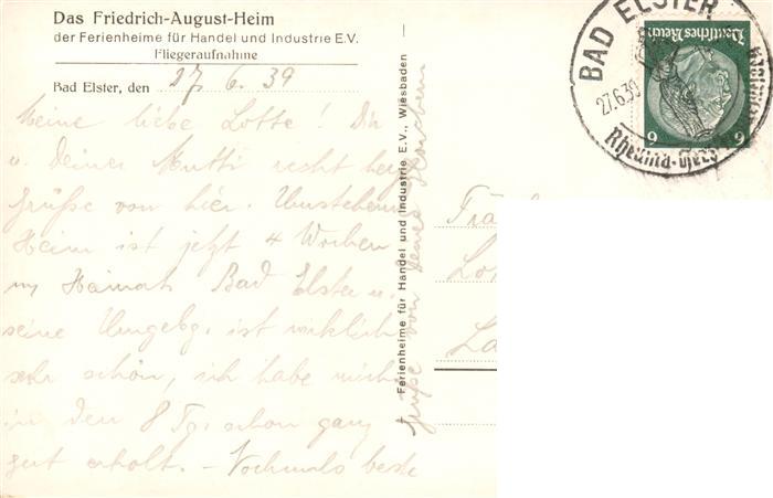 73885675 alte Postkarte Bad Elster Friedrich August Heim Fliegeraufnahme postalisch gelaufen Erhaltung siehe scans [FriedD77] KatCode: 11110014178050