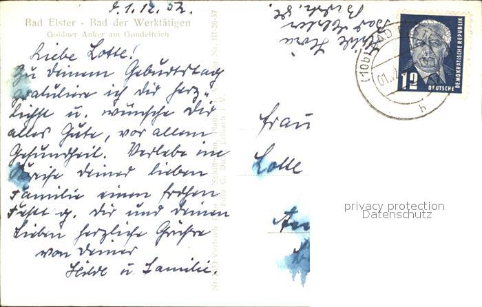 72397156 alte Postkarte Bad Elster Goldner Anker am Gondelteich postalisch gelaufen Erhaltung siehe scans KatCode: 11110014178050