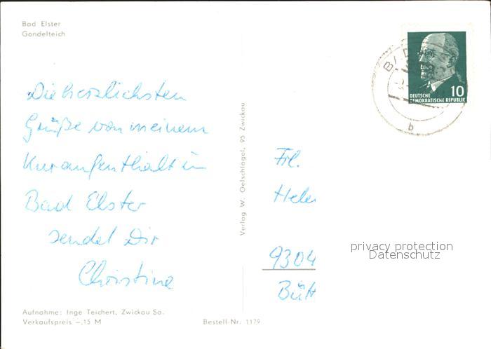 72383321 alte Postkarte Bad Elster Gondelteich postalisch gelaufen Erhaltung siehe scans KatCode: 11110014178050