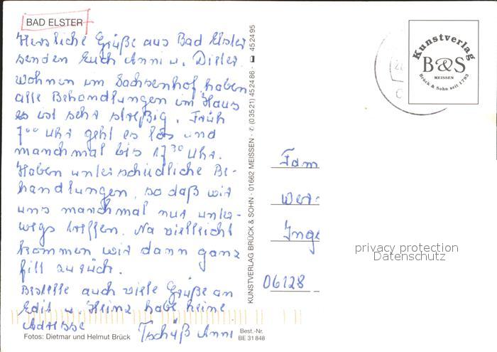 72382065 alte Postkarte Bad Elster Gondelteich Haus Weisse Elster Kurhaus Albertbad postalisch gelaufen Erhaltung siehe scans KatCode: 11110014178050