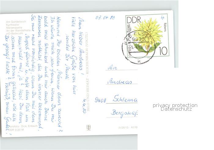 72399913 alte Postkarte Bad Elster Gondelteich Kurtheater Marienquelle Wandelhalle postalisch gelaufen Erhaltung siehe scans KatCode: 11110014178050