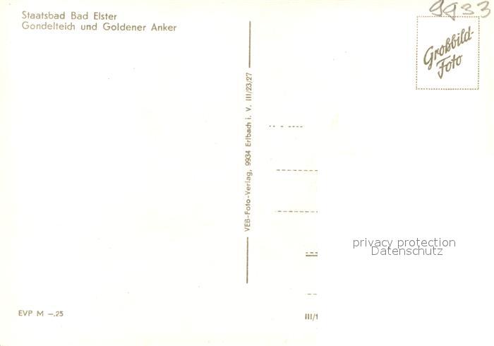 72982886 Bad Elster Gondelteich und Goldener Anker postalisch nicht gelaufen Erhaltung siehe scans [WerneD78] KatCode: 11110014178050