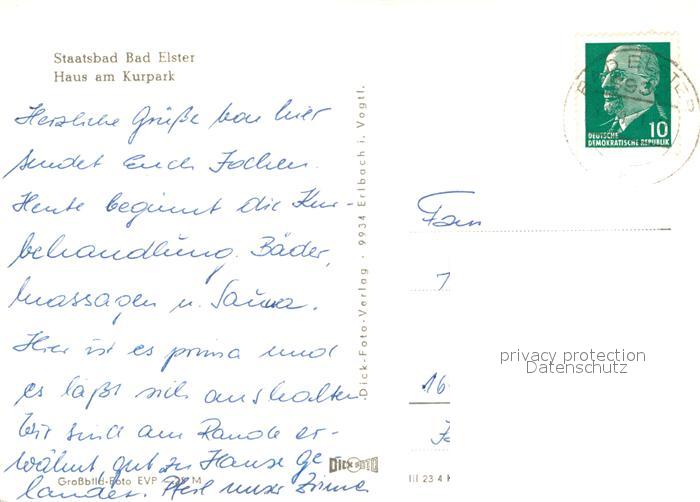 72925224 alte Postkarte Bad Elster Haus am Kurpark postalisch gelaufen Erhaltung siehe scans [LiesaD40] KatCode: 11110014178050