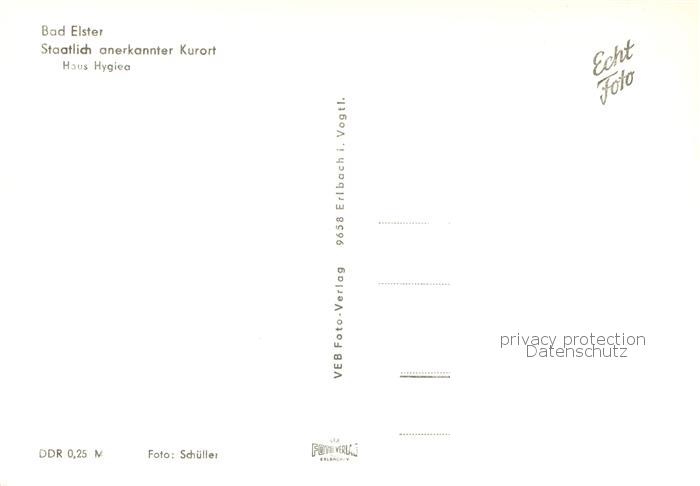73751036 Bad Elster Haus Hygiea postalisch nicht gelaufen Erhaltung siehe scans [WerneD78] KatCode: 11110014178050