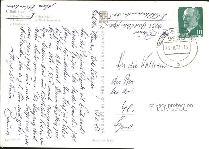 72424036 alte Postkarte Bad Elster Haus Parcifal Kurhaus Moritzquelle Badehaus postalisch gelaufen Erhaltung siehe scans KatCode: 11110014178050
