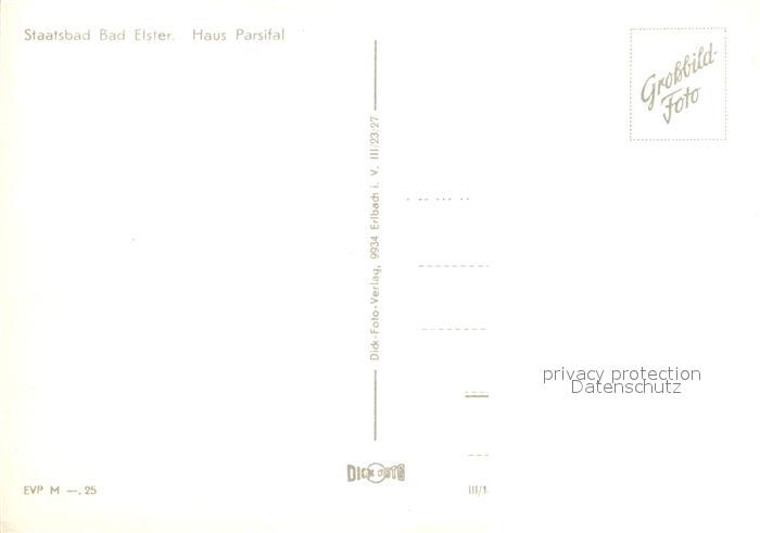72927400 Bad Elster Haus Parsifal postalisch nicht gelaufen Erhaltung siehe scans [LiesaD40] KatCode: 11110014178050
