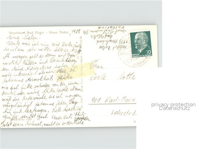 71901359 alte Postkarte Bad Elster Haus Tietze Staatsbad postalisch gelaufen Erhaltung siehe scans KatCode: 11110014178050