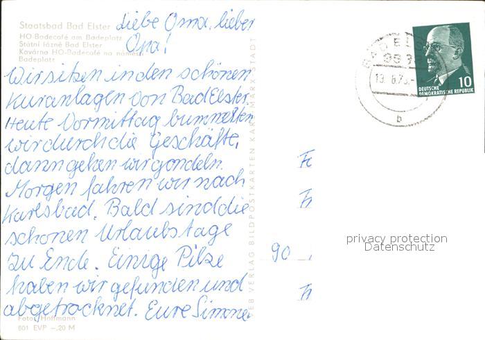 72326694 alte Postkarte Bad Elster HO Badecafe am Badeplatz postalisch gelaufen Erhaltung siehe scans KatCode: 11110014178050