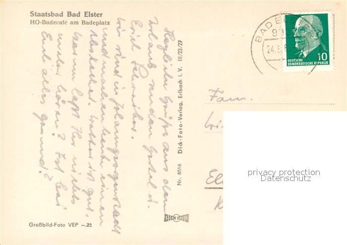 73073614 alte Postkarte Bad Elster HO Badecafe am Badeplatz postalisch gelaufen Erhaltung siehe scans [WerneD78] KatCode: 11110014178050