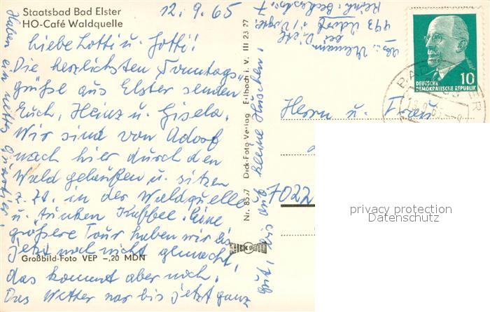 73712284 alte Postkarte Bad Elster HO Cafe Waldquelle postalisch gelaufen Erhaltung siehe scans [WerneD78] KatCode: 11110014178050