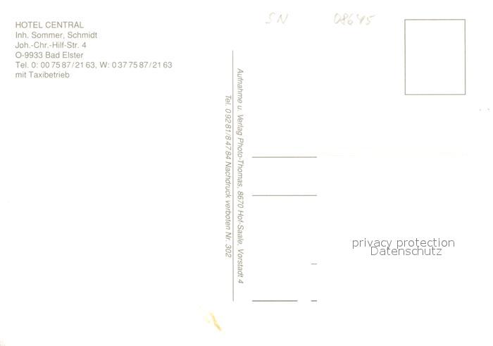 73657527 Bad Elster Hotel Central postalisch nicht gelaufen Erhaltung siehe scans [FriedD77] KatCode: 11110014178050