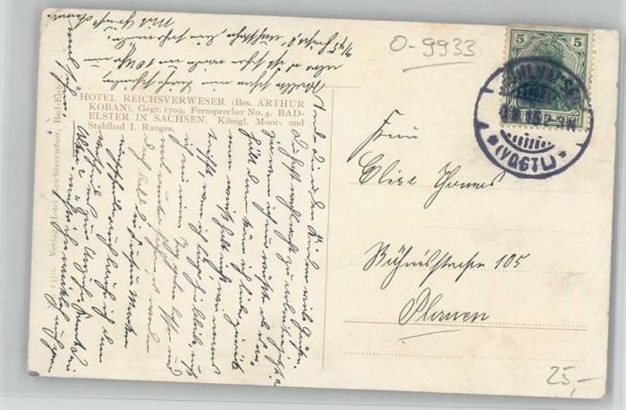 40042339 Bad Elster Hotel Reichsverweser KatCode 11110014178050